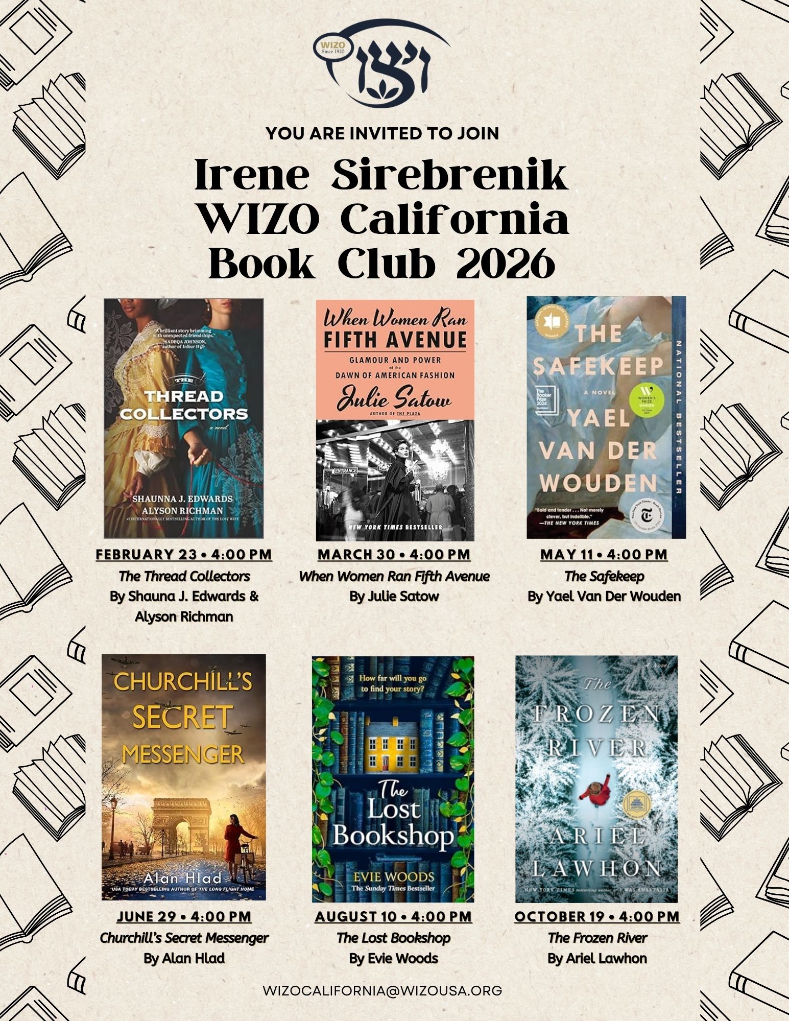 Upcoming Event May Book Club ; CHANGE A LIFE TODAY WIZO USA, The Women’s International Zionist Organization, is a worldwide non-profit organization that operates over 800 social welfare projects in Israel. DONATE