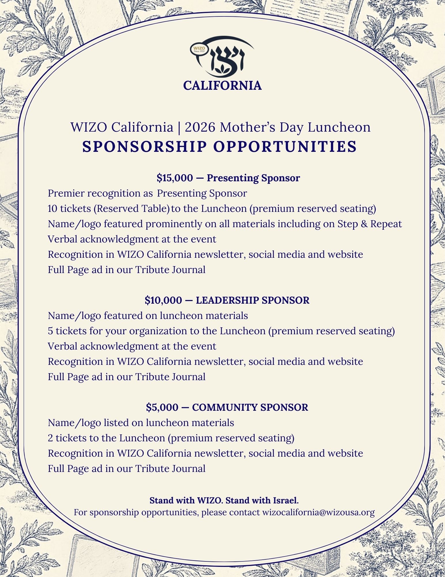 WIZO USA, The Women’s International Zionist Organization, is a worldwide non-profit organization that operates over 800 social welfare projects in Israel.