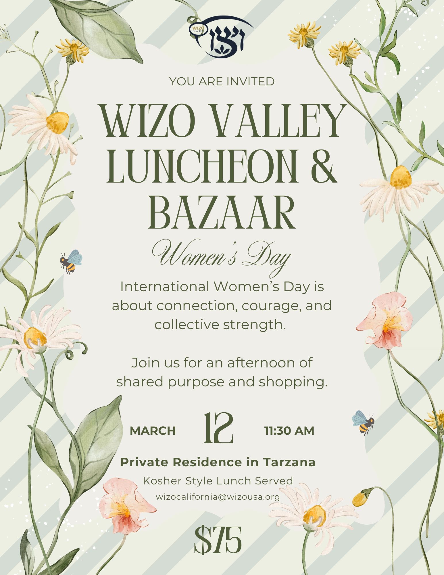 Upcoming Event Valley Luncheon & Bazaar ; CHANGE A LIFE TODAY WIZO USA, The Women’s International Zionist Organization, is a worldwide non-profit organization that operates over 800 social welfare projects in Israel. DONATE