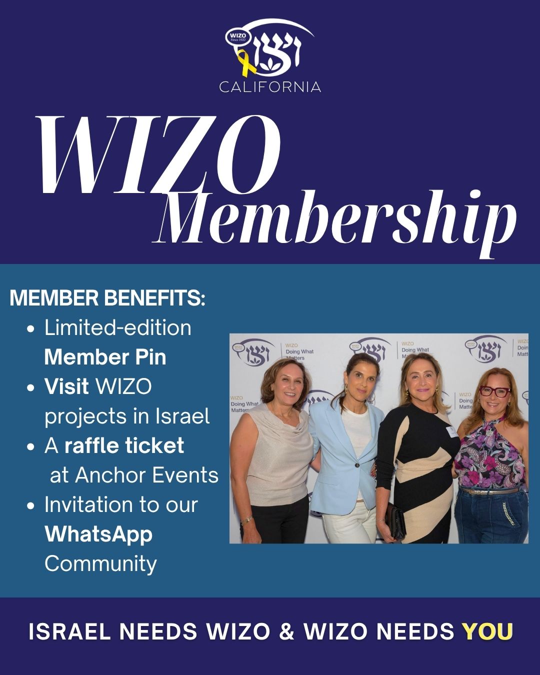 WIZO USA, The Women’s International Zionist Organization, is a worldwide non-profit organization that operates over 800 social welfare projects in Israel.